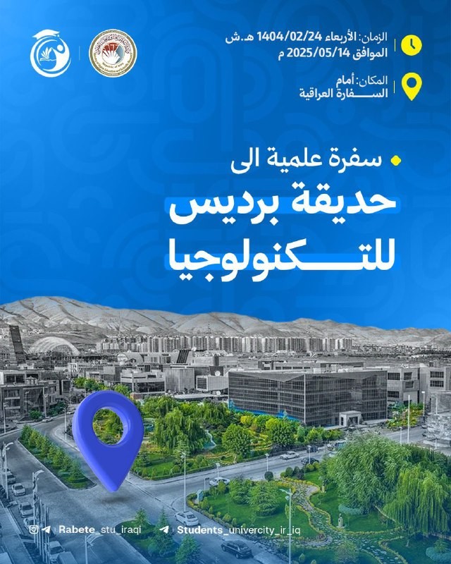تُعلن الدائرة الثقافية العراقية في إيران، بالتعاون مع رابطة الطلبة العراقيين، عن تنظيم زيارة علمية خاصة إلى مدينة برديس للتكنولوجيا، للطلبة العراقيين المقيمين في إيران.